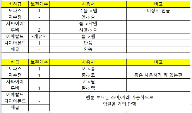 최상급은 자수정과 루비 옆에만 크래프트용으로 CRE 을 써놨습니다.
