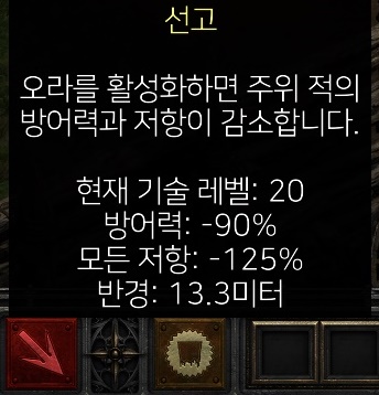 12 레벨의 선고(컨빅션) 오라는 몬스터의 방어력과 마법 저항력을 저하시키는데요
