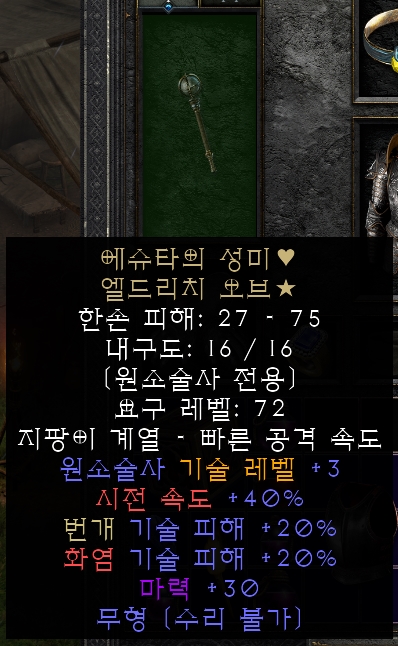 화염과 번개를 사용하는 원소술사 최고의 아이템입니다.