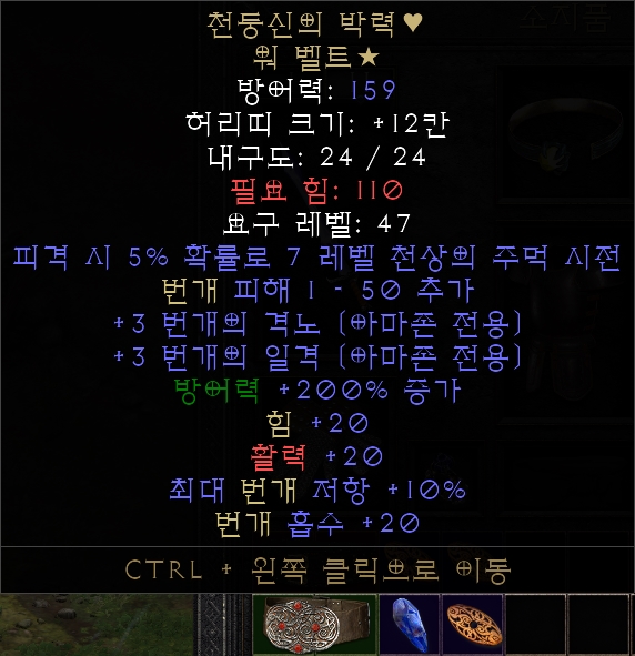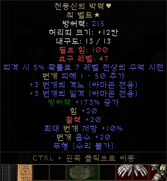 일명 선더갓이라고 불리는 유니크 벨트입니다.