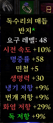 크래프트링은 거의 블러드 계열만 사용됩니다. (기본 옵션: 1~3% 라획, 1~5힘, 10~20라이프) 3가지 기본 옵션을 제외한 3개 접미사의 수치가 중요합니다. 다시 말해서, 패캐+힘+덱+피+라회+체라+중감