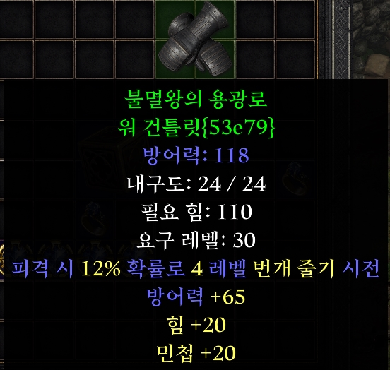 바바리안 전용 세트 아이템인 불멸 왕 장갑입니다.
